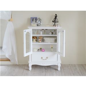 姫系キャビネット キャッツプリンセス キャビネット SGT-0110-WH 今日はキャッツプリンセスシリーズのキャビネットをご紹介します。 真っ白はキャビネットに、パールをあしらったアンチーク調の取っ手。 全面の幕板には、薔薇のモチーフのデコレーション付き。 扉はマグネット式でしっかり固定。 開き戸はガラスと透明なので、お気に入りの小物で可愛くデスプレイ。 高さは80cmなので、お部屋に置いても圧迫感のない高さ。 下段には引き出しがあるので、収納ができて整理整頓もできます。 「キャッツプリンセスキャビネット SGT-0110-WH」詳細はこちら [0回]PR