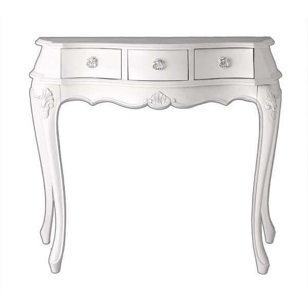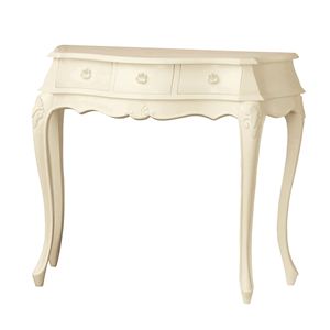 猫脚 コンソールテーブル 幅90cm フランソワーズ こんばんは。 姫系家具を紹介している『プリアンティーク♡』のJunkoです。 『コンソールテーブル 幅90cm ホワイト』はこちら 皆様はコンソールテーブルをどのように使いたいですか? ・玄関用のテーブルとして ・ベッドルームサイドのテーブルとして ・日記などの書き物をする机として ・ノートパソコンを使う机として ・リビングのサイドテーブルとして etc コンソールテーブルはとても使い勝手のある活用豊富なテーブルです。 『コンソールテーブル幅90cm ブラウン』はこちら リブングルームではサイドテーブルとしてオーナメントを飾ったり、 ファックス台や電話を置くテーブルとしても活用できます。 引出しは3杯もあるので小物を小分けにして収納できるところが便利です。 天板にはアンティーク風のおしゃれな模様がデザインされています。 品と落ち着きのあるデザインです。 カラーはブラウンとホワイトの2色があります。 お部屋に合わせてカラーをお選びいただける2色のコンソールテーブル。 『姫系 コンソールテーブル』はこちら [0回]