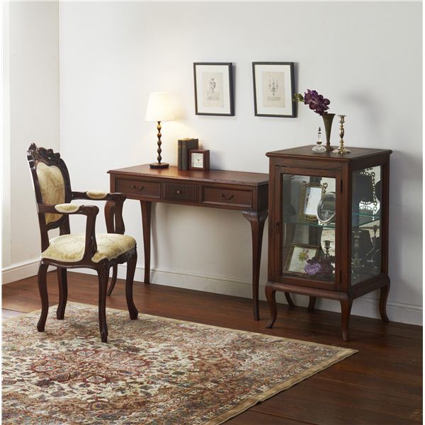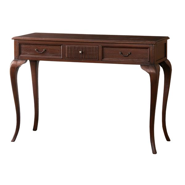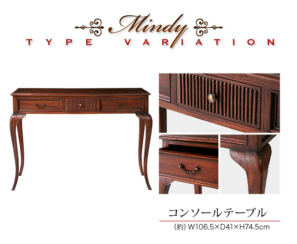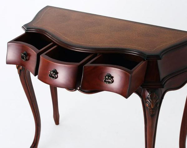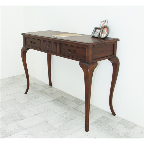 猫脚コンソールテーブル ミンディmindy こんばんは。 姫系家具を紹介している『プリアンティーク♡』のJunkoです。 コンソールテーブルをお使いですか? デスクとして、サイドテーブルとして、玄関用テーブルとしてなど コンソールテーブルは活用法がたくさんあり便利ですよね! 『ミンディ 猫脚コンソールテーブル』はこちら 外寸:(約)幅106.5×奥行41.0×高さ74.5cm スラリとした猫脚が特長のアンティーク調コンソールテーブル『ミンディ』。 引出しが付いているので小物が収納できて重宝します。 引出内寸(両サイド):(約)幅30.0×奥行27.5×高さ7.0cm引出内寸(中央):(約)幅20.5×奥行23.5×高さ7.0cm 引出しは全部で3杯 両サイドの引出しは中央の引出しより広めになっています。 天板にはノートパソコンを置いてネッ作業ができる広さです。 デスクトップの場合はキーボードを置くと作業スペースがほどんどなくなります。 ちょっと書き物をするデスクとしては最適な大きさです。 また、花瓶やランプを置くサイドテーブルとしても最適です。 活用方法が色々あるのがサイドテーブルの特長です。 おしゃれで便利なテーブルです。 その他の『姫系 コンソールテーブル』はこちら [0回]