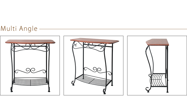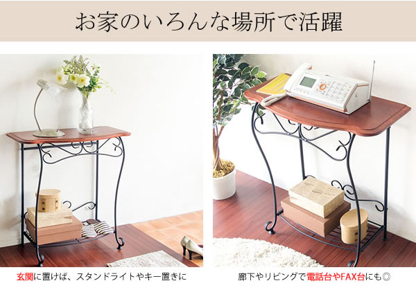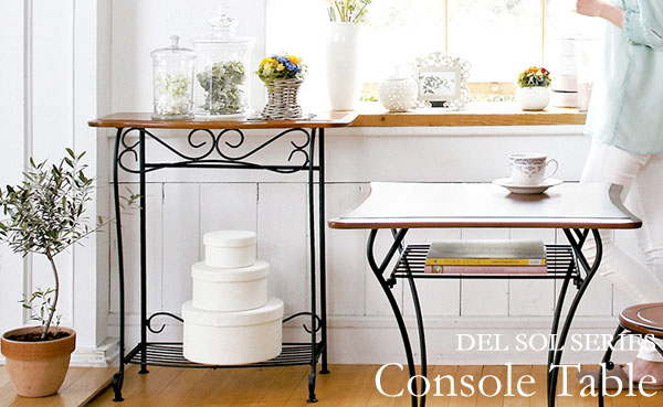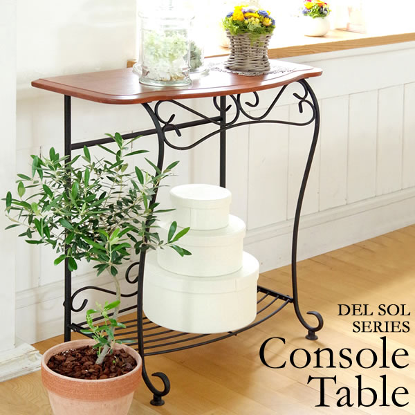 おしゃれな玄関用コンソールテーブル 幅75cm アジャスター/棚付き 『Del Sol』 こんばんは。 姫系家具を紹介している『プリアンティーク♡』のJunkoです。 玄関に花瓶を置きたいとき、廊下にオーナメントを飾りたい場合、 壁際にコンパクトな観葉植物を飾りたいとき、どのような棚に飾りますか? 飾る棚次第では花瓶がおしゃれに見えたり何の変哲もないお花に見えたり、 廊下が素敵な空間になったり何の変哲もない空間であったり、 壁際に飾られている観葉植物が素敵に見えたり普通に見えたり、 飾っている棚次第でお花やオーナメントがさらに素敵に見えるかどうか決まります。 玄関に花瓶を置くときや観葉植物や廊下にオーナメントを置く棚として よく使われるのは「コンソールテーブル」です。 【製品サイズ】W75×D35×H80cm こちらは「DelSol」のアイアン猫脚コンソールテーブルです。 ・アイアンの特長である圧迫感のない作り 幅75cm奥行35cm高さ80cmのコンソールテーブル、天板は木製、脚はアイアン。 脚がアイアンのためドッシリ感のない空間を邪魔しないデザインになっています。 ・スッキリとしたデザイン デザインはアイアン独特の曲線が施されていますがスッキリとしています。 飾る物に対して邪魔をしないシンプルなデザインになっています。 下には棚がついているので小物を置くことができます。 ・カーブのあるデザイン 天板は緩やかなカーブがデザインされたやさしい印象の作り また角が丸くなっていることで角に当たっても怪我もしにくくなっています。 お子様がいるご家庭でも安心して置けます。 おしゃれなコンソールテーブルはどんな物を置いても素敵になります♡ 下棚にボックスを置いただけでもお洒落感があります。 ・活用の仕方は色々 コンソールテーブルは玄関先や廊下などの飾り棚として活用いただく他に、 リビングでの電話台やファックス台としてもおしゃれです。 ・どこから見てもおしゃれ シンプルなデザインのアイアンコンソールテーブルですが、 アイアン独特の曲線がさりげなく施されたスッキリしたおしゃれなデザイン。 マンションや一軒家の玄関、廊下、リビングに置くとパッと雰囲気が明るくなる、 そんなおしゃれなデザインのコンソールテーブルです。 コンソールテーブルはさりげない場所に置かれることが多いテーブルです。 しかし、その存在感はとても大きいんです! 活用の仕方は個性色々なのでパターンはありません。 それほどにコンソールテーブルは魅力的で人気のあるテーブルです。 『媛系 コンソールテーブル』はこちら [0回]