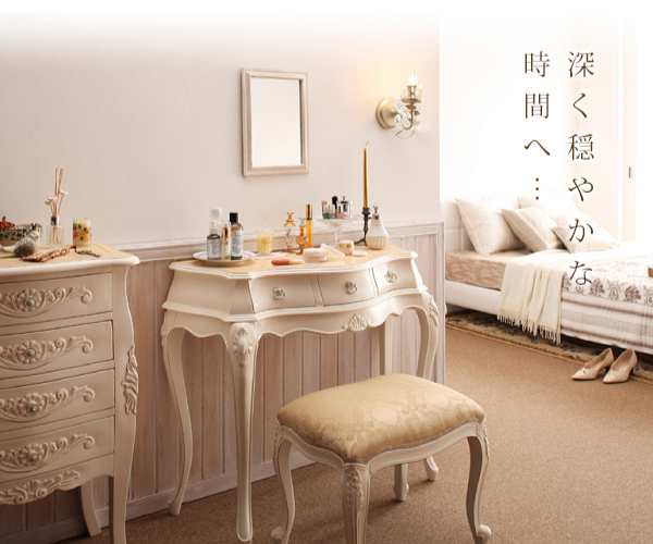 ピュアホワイトアンティーク飾り家具 コンソール こんにちは。 姫系家具を紹介している『プリアンティーク♡』のJunkoです。 今回は前回に引き続き「ピュアホワイト」シリーズ家具のコンソールテーブルをご紹介します。 引出しが全部で5杯ついたコンソールテーブルです。 天板におしゃれなスタンドミラーがあり、とても素敵ですね。 ドレッサー代わりとしても活用できますよね♡ スリムな猫足がとてもエレガントです。 引き出しの取っ手には薔薇をモチーフとしたおしゃれなデザインが施されています。 女性らしさのあるデザインですね。 引き出しには何を入れようか? なんて、ウキウキするほどおしゃれなデザインですよね。 リビングに置いてファックス台として、また電話台としても。 玄関に置いて天板には絵画や花瓶を飾り、おもてなしの印象を華やかに。 ベッドルームに置いてドレッサー代わりに。 いろんな活用法ができるのがコンソールテーブルのメリットですね。 お部屋を女性らしくおしゃれにしたい方にピッタリのデザインですよ♡ >>>プリアンティークはこちら [0回]PR