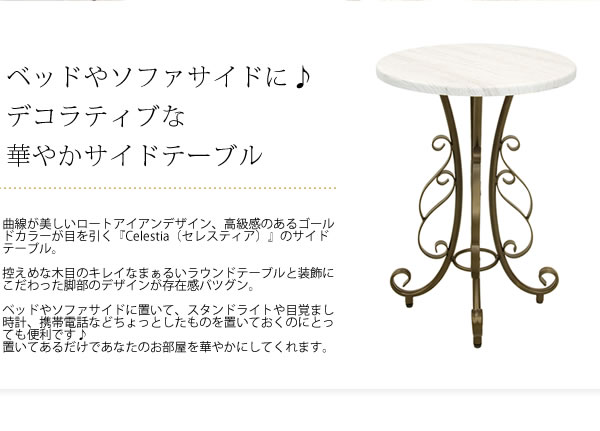 アンティーク調 サイドテーブル 白 こんばんは。姫系家具を紹介している『プリアンティーク♡』のJunkoです。 アイアン家具にはストレートの脚や猫脚があります。 姫系家具で揃えているお部屋には猫脚のアイアン家具がおすすめです。 アイアン家具シリーズにはアンティーク調のものも多く 今日ご紹介するセレスティアは特にアンティーク調の雰囲気があります。 ダークゴールドがベースのセレスティアの魅力をご紹介します。 【製品サイズ】W×D×H(cm):35×40×60 ベッドの横、ソファーの横、机の横などのサイドテーブルにピッタリのアイアンテーブル。 ベッドの横に置くときはランプを置いたり目覚まし時計を置いたりスマホを置いたり、またソファの横に置くときには花瓶を置いたり本を置いたりカップを置いたり活用できます。 高さは60cmなのでベッド横に置くにはピッタリの高さです。 ベッドから手の届く高さなので、目覚ましもすぐに手が届きますね。 また天板の下には高さ10cmのスチール棚が備えてあるので読みかけの本も置けます。 天板も棚も角は丸くしていある丁寧でな造り。 脚もアイアン独特の曲線が描かれていて大変エレガントなデザインになっています。 幅35cm奥行40cmと大変コンパクトなサイドテーブルです。 大きな物は置けませんがランプや目覚ましなど置くにはちょうど良いコンパクトさです。 一人暮らし女子のお部屋でも置けるコンパクトサイズでベッドルームをおしゃれにします♡ ワンルーム(12畳以下)、1LDKのお部屋でも邪魔にならないサイズです。 天板は白い木目で作れたやさしくシャビーシックな造り。 アンティーク調ダークゴールドの脚にピッタリの天板です。 脚はアイアンならではの曲線が施された姫系のデザイン。 アジャスター付きでガタつきを抑えるのでお部屋の床にピッタリフィット。 アイアン家具のセレスティアはシリーズになっています。 サイドテーブル以外にもラウンドテーブル、ハンガー、ドレッサーなどもあります。 シリーズで揃えると統一感が出て、お部屋がとてもスッキリしたおしゃれな部屋になります。 すべての家具をシリーズで揃えることは難しいですが、 統一感を出すためシリーズで数点揃えることはおしゃれな部屋作りになります。 セレスティアのシリーズで揃える場合は、 ・ベッドとサイドテーブル ・ハンガーとドレッサー ・テーブルとドレッサー など、大き目の家具を2つほどシリーズで揃えると統一感が生まれます。 統一感を出すためには一部屋にいろんな色は使わないことです。 家具はお同系色で揃えて、色を使いたいときにはクッションやオーナメントの小物で使いましょう。 セレスティアのアイアン家具シリーズはアンティーク調クラシックの上品な家具です。 姫系のお部屋にピッタリのエレガントな家具です。 アンティーク調でエレガントなアイアン家具を置きたいお部屋にピッタリです。 『アイアン テーブル・デスク』はこちら [0回]