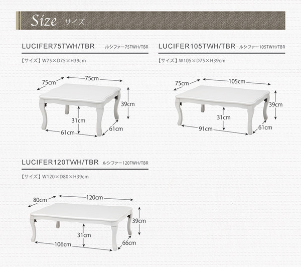 「アンティーク調こたつホワイト正方形」詳細はこちら