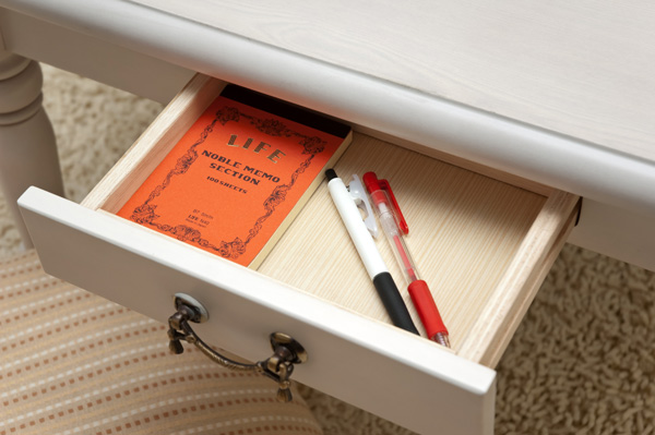 オールシーズン使えるデザインで、小さな引き出しがあり小物がしまえます。
