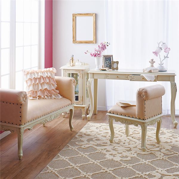 アンティーク スツール 猫脚 高さ45cm 『ハンプトンシリーズ』 姫系 スツール こんばんは。 姫系家具を紹介している『プリアンティーク♡』のJunkoです。 スツールの活用法は色々ありますよね。 ・ドレッサーの椅子として ・脚立替りとして ・玄関で靴を履くときの腰掛として ・オットマンとして ・予備の椅子として など、スツールの活用法は色々あります。 【商品サイズ(外寸)】(約)幅47×奥行36×高さ45cm 『ハンプトン 猫脚スツール』はこちら アンティーック調のおしゃれなスツール『ハンプトン』です。 座面は淡いピンク系カラーで癒し系です。 脚は猫脚なので華奢なイメージがあり姫系の家具にピッタリです。 幕板部分は緩やかなカーブのデザインでやさしい印象を与えています。 同ハンプトンシリーズのドレッサーの椅子としてもピッタリです。 オットマンとしてお使いになるときにはソファの前に。 この際はソファと同シリーズがおすすめです。 ハンプトンはシリーズ化されているのでソファと合わせることができます。 ハンプトンシリーズはその他に ・ベッド ・ソファ ・ドレッサー ・チェスト ・キャビネット ・デスク ・ダイニングテーブル ・ダイニングチェア ・ローテーブル などがあります。 シリーズで揃えることで統一感が生まれお洒落な部屋作りができます。 『ハンプトンシリーズ』はこちら [0回]PR