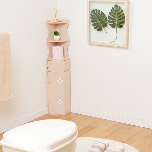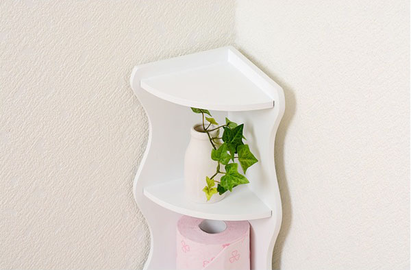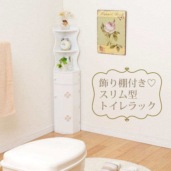 トイレラック(トイレ収納/コーナーラック) 幅16cm×奥行18cm おはようございます。 姫系家具を紹介している『プリアンティーク♡』のJunkoです。 トイレもお部屋の一つ、最近ではトイレもおしゃれにする時代になりました。 友人の家に遊びに行くと、トイレをおしゃれにしている方がいます。 トイレ掃除用具を見せないようにしたり、小さな観葉植物を飾っていたり。 そんな清潔感あるおしゃれなトイレだとお客として行ってもホッとしますね。 しかし、カビが生えているようなトイレだと正直不快です(汗 では自宅のトイレはどうでしょう? お客が来ても「大丈夫」といえる状態になってますか? 今日はトイレをスッキリ綺麗に見せるためのアイテム「トイレラック」をご紹介します。 【商品サイズ(外寸)】(約):幅16×奥行18×高さ110cm 『トイレラック(コーナーラック) 幅16cmピンク』はこちら 狭いトイレでもスペースを取らないコーナーラックです。 コーナーを上手に活かすとトイレラックを置いても邪魔になりません。 色は淡いピンクでやわらかい印象のある色。 アクセントとして白いクローバーのデザインが施されています。 一番下にはトイレブラシを収納できる高さになっています。 他3段の棚にはサニタリー用品、トイレ掃除用具など小物が収納できます。 天板にはお気に入りの小物をディスプレイしてお洒落に演出できます。 トイレブラシなど掃除用具を収納するだけでもトイレはスッキリします。 またおしゃれなトイレラックを使用することでトイレのお洒落感がアップします。 また壁に鏡や絵を飾ったりするとさらにお洒落がアップします。 同じデザイン同じサイズでホワイトもあります。 『トイレラック(コーナーラック) 幅16cm白』はこちら 白というと姫系家具の中でも人気の色です。 トイレの壁が白い場合は白いトイレラックを置いても圧迫感を感じません。 まとめ 狭いトイレの場合は壁と同色系のトイレラックを置くことで圧迫感が少なくなります。 あまり色んな色を使ってしまうと狭く感じたりチグハグになりお洒落感がなくなります。 コンパクトなコーナーラックは収納力があまりありません。 トイレットペーパーは上に突っ張り棒などを置いて収納するとスッキリします。 トイレをおしゃれにしたい場合はできるだけ床に物を置かないようにすることが大切です。 トイレをスッキリ見せることだけでもおしゃれに見えます。 その他の『姫系 トイレタリー』はこちら [0回]