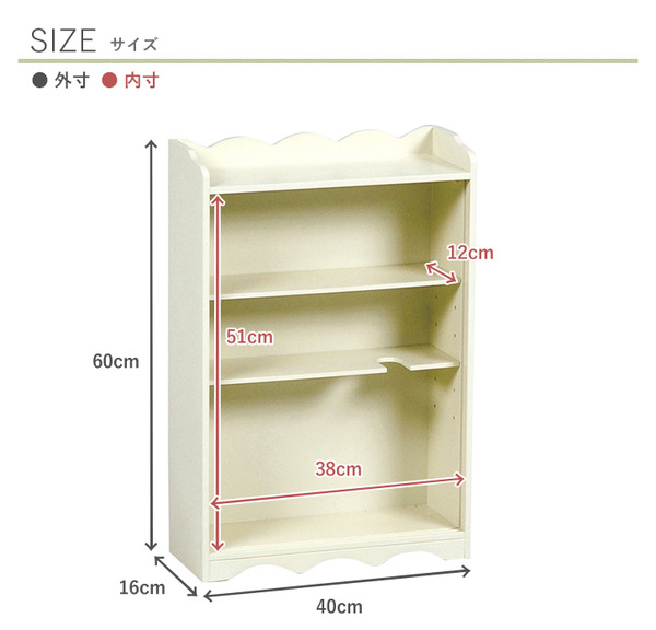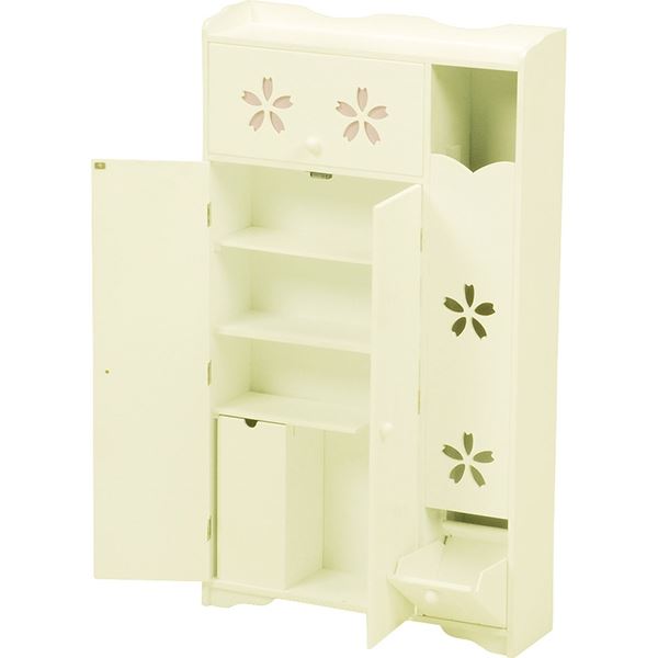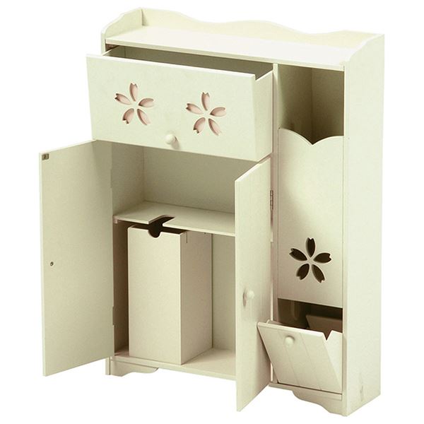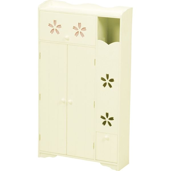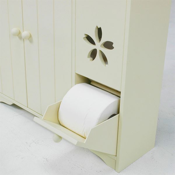カントリー調トイレラック サクラ 木製 可動棚付き こんにちは。 姫系家具を紹介している『プリアンティーク♡』のJunkoです。 トイレもお部屋の一つ、そう考える時代の今はトイレもおしゃれにしたいですね。 トイレをおしゃれにするには、先ずはトイレをスッキリ片付けたいですね。 そこでおすすめなのがトイレラックを活用することです。 商品サイズ(外寸):(約)幅40×奥行16×高さ60cm扉内内寸:(約)幅38×奥行12×高さ51cm可動棚:2枚・4cmピッチ 『カントリー調トイレラック サクラ 幅40cm』はこちら 幅40cmなので奥行がたったの16cmなので狭いトイレでも納まります。 扉は開き戸と違い引き戸なので収納物を出し入れする時でも扉が邪魔になりません。 ※開き戸の場合は扉部分のスペースが必要となるのでご注意ください 幕板と背飾り部分にはゆるやかなカーブが施されていて優しい印象があります。 角ばった棚と違いカーブがあると女性らしいやわらかいイメージがあります。 天板は飾り棚としてディスプレイができるのでお気に入りの小物が飾れます。 観葉植物、芳香剤、時計、フォトスタンドなどおしゃれに演出ができます。 サクラの模様が左右の扉に一つずつ、上と下にありシンプルに仕上げています。 でもとても可愛くおしゃれなトイレラックとして見た目も満点! 見た目だけではなく収納力もありたっぷり小物が収納できます。 【可動棚】 ・2枚ある棚は可動棚となっているので収納物の高さに合わせて調節できます。 ・1枚はトイレブラシが収納できるように模られています。 トイレトペーパーのみなら12コ収納が可能。 ブラシを収納する場合はトイレットペーパーは9コ収納が可能。 その他、サニタリー用品やトイレ掃除用具など見せたくない物の収納にピッタリ。 ダストボックスを購入してトイレラックに収納するのもいいですよね! 【商品サイズ(外寸)】(約)幅60×奥行16×高さ60cm【内寸及び補足説明】 ■ 扉内内寸:(約)幅28×奥行12×高さ51cm■ 可動棚:4枚・4cmピッチ 『カントリー調トイレラック サクラ 幅60cm』はこちら 同じサクラ柄の引き戸のトイレラックに幅60cmもあります。 棚4枚すべてが可動棚なので収納物に合わせて調節できます。 一枚はトイレブラシが収納できるよう模られています。 トイレットペーパー12コ収納する以外にもトイレ掃除用品やサニタリーなど トイレットペーパーとトイレブラシ以外にも収納できる大きさです。 収納物が多く、幅60cmほどの棚が置けるスペースのトイレにおすすめのサイズです。 商品サイズ(外寸):(約)幅50×奥行14×高さ67cm引出内寸:(約)幅33×奥行11×深さ14cm扉内内寸(上):(約)幅33×奥行11×高さ15cm扉内内寸(下):(約)幅33×奥行11×高さ25cm可動棚:1枚 『トイレットペーパーラック付きトイレラック 高さ67cm』はこちら 幅50cmのトイレラックの左サイドにはトイレットペーパーラックがあります。 高さ67cmなので約5コほど収納可能。 下の扉を引くと取り出せるようになっています。 またサクラのくり抜きでトイレットペーパーがなくなったのが分かります。 上段の引出しにはサニタリー用品やトイレ用掃除用具を収納するのにピッタリです。 棚にはトイレブラシが収納できるよう模られています。 ダストボックス付きです。 天板にはお気に入りの小物をディスプレイできるようになっています。 背飾りと幕板にはゆるやかなカーブがありやさしい印象になっています。 商品サイズ(外寸):(約)幅50×奥行14×高さ87.5cm引出内寸:(約)幅32×奥行11×深さ13cmダストボックス内寸:(約)幅10×奥行11×深さ23cm扉内内寸(上):(約)幅33×奥行11×高さ11cm扉内内寸(下):(約)幅33×奥行11×高さ25cm可動棚:2枚、固定棚:1枚 『トイレットペーパーラック付きトイレラック 高さ87.5cm』はこちら 高さ87.5cmはトイレットペーパーが約7コほど収納できます。 棚板は全部で3枚、中央は固定棚になり残りの2枚は可動棚になっています。 一枚はトイレブラシが収納できるように模られています。 幅67cmよりも棚の数もあり、さらに収納力のあるトイレラックになっています。 背飾りと幕板にはゆるやかなカーブがデザインされてやわらかい印象があります。 トイレをお洒落にすつ場合は先ずはトイレをスッキリ片付けること。 それにはおしゃれなトイレラックを活用すると便利ですよ!! その他の『姫系 トイレタリー』はこちら [0回]