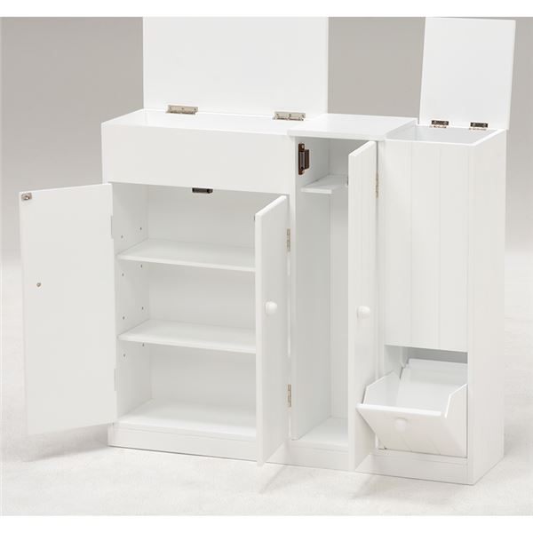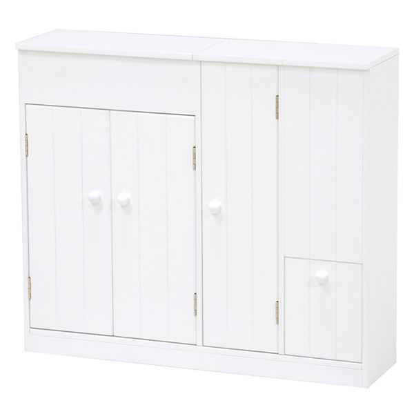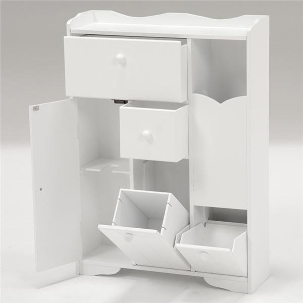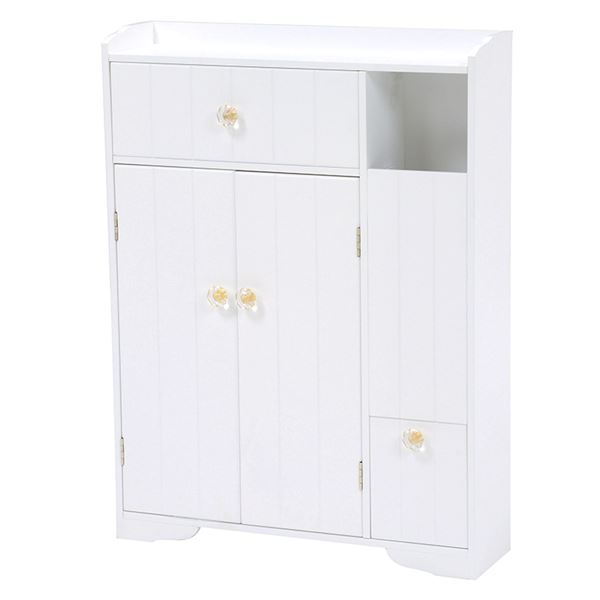 トイレラック(トイレ収納 トイレキャビネット) カントリー調/ホワイト(白) こんにちは。 姫系家具を紹介している『プリアンティーク♡』のJunkoです。 トイレもお部屋の一つという今の時代ではトイレもおしゃれにしたいですね。 おしゃれにするためには、トイレまわりをスッキリ片付けたいものです。 そこで活用したいのがトイレラック(トイレ用収納棚)です。 【商品サイズ(外寸)】(約):幅45×奥行14×高さ63cm 『カントリー調トイレキャビネット 幅45cm 白』はこちら 白く清潔感あるトイレキャビネット。 たっぷり収納できるサイズです。 【やわらかな印象】 取っ手もすべて白で統一されたカントリー調のデザイン。 幕板と背飾りにはゆるやかなカーブが施されたやわらかくやさしい印象。 天板にはお好みの小物をディスプレイしておしゃれに演出できます。 【トイレットペーパーラック】 左サイドには約5コほど収納できるトイレットペーパーラックがあります。 下の扉を引く事でペーパーがでてきます。 【ダストボックス】 中央下にはダストボックスが備えられています。 【トイレブラシ収納棚】 右サイドにはトイレブラシが収納できるようになっています。 【小物が収納できる引出し2杯】 引出しが2杯あるのでサニタリー用品や掃除用具など小物が収納できます。 これだけ収納できればトイレ周りはかなりスッキリしますよね。 床の上にトイレブラシやトイレ用洗剤があるとお掃除のときはちょっと面倒・・・ 用具を移動して床を拭いたりするのは毎回の事なので大変です。 でも、トイレキャビネットに収納することでお掃除も楽になります♪ 【商品サイズ(外寸)】(約):幅60×奥行16×高さ52cm 『カントリー調 トイレキャビネット 幅60cm 白』はこちら 大容量サイズのトイレキャビネット。 カントリー調で爽やかイメージのある白で統一されています。 【上に引く扉】 天板の扉は上に引くタイプになっているので小物を飾るスペースは 中央のトイレブラシを収納する上のみになります。 【可動棚】 棚板は可動棚となっているので収納物の高さに合わせて調節できます。 開き戸となっているので扉のスペースが必要となります。 ワイドサイズなのでかなりの量が収納できます。 【トイレットペーパーラック付き】 左サイドにはトイレットペーパーを収納するラックが付いています。 下の扉を引くことで取り出し可能。 【小物入れ】 右上の扉を上に上げると小物入れがあります。 サニタリー用品やお掃除用品などたっぷり収納できる大きさです。 ワイドサイズなのでトイレ周りの小物や掃除用具はこれ一台でスッキリ! 姫系家具の定番カラーホワイトなのでシンプルで清潔感があります。 【商品サイズ(外寸)】(約):幅50×奥行14×高さ67cm 『クリスタル取っ手付きトイレキャビネット 幅50cm 白』はこちら とてもシンプルなデザインですがクリスタルの取っ手がアクセントになっています。 天板にはお気に入りの小物を飾ってお洒落に演出することができます。 清潔感ある真っ白なトイレラックにキラキラ光るクリスタルの取っ手がお洒落です。 【トイレットペーパーラック付き】 左サイドにはトイレットペーパーをストックするラックが付いています。 約5コほど収納可能。 【ダストボックス付き】 棚と同色のホワイトのダストボックス付き。 棚の上にもトイレットペーパーなど小物が収納できます。 【小物入れ】 上段の引き出しにはサニタリー用品やお掃除用品など小物が収納できます。 シンプルなデザインなのにとってもお洒落感あるトイレラックです。 開き戸なので扉のスペースが必要となります。 まとめ たっぷり収納できるトイレキャビネットはちょっと広めのトイレにおすすめ。 特に開き戸の場合は扉を開ける時のスペースも必要となります。 トイレ掃除用品を収納するだけでもトイレの雰囲気が素敵になります。 トイレラック、トイレキャビネットを上手に活かしてトイレも一つのお部屋に♡ その他の『姫系 トイレタイリー』はこちら [0回]